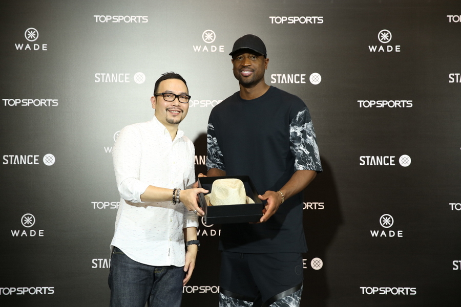粉丝互动环节过后,Wade受邀参与按手印仪式,与STANCE品牌国际销售总监 Tyler Cannon先生、Powerbest公司总经理蔡文昕先生、品牌总监黄怡华小姐、销售总监卢冠洲先生及TOPSPORTS体育事业部副总经理柴晓佶先生,华东区副总经理张明先生共同见证并合影。